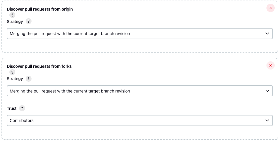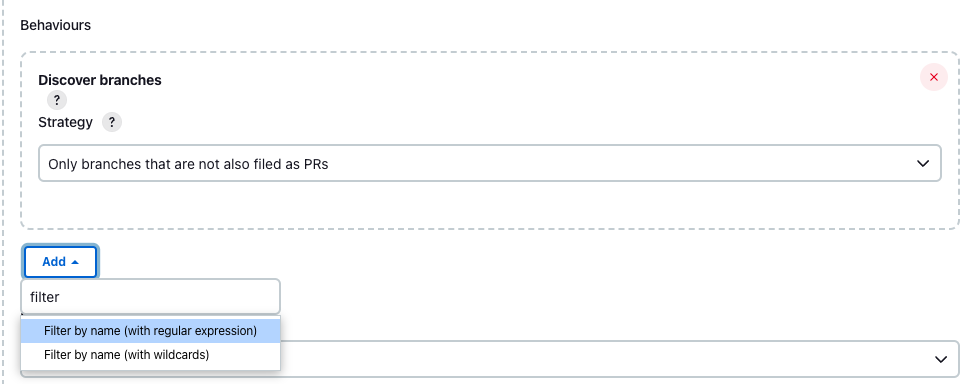 Jenkins로 CI/CD Pipeline 구축하기 - 8. JenkinsFile 생성 대쉬보드 - 만들어둔 파이프라인 - Configure 선택해주세요. Behaviours 항목에서 위에 두개를 삭제해주세요. add 를 눌러서 filter by name 을 선택해..