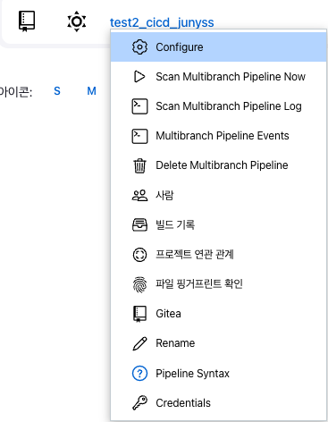 대쉬보드 - 만들어둔 파이프라인 - Configure 선택해주세요.