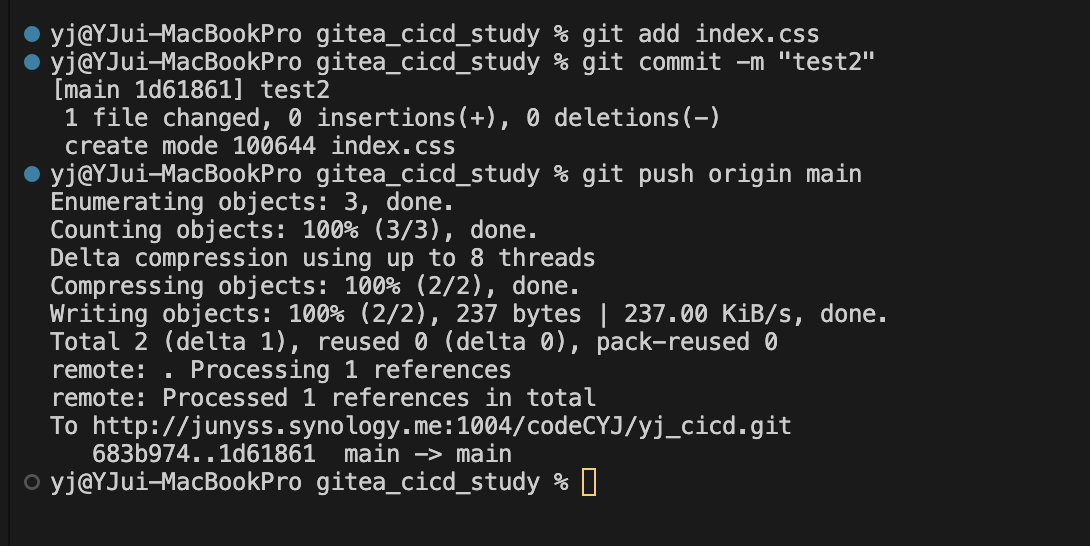 gitea에도 push가 잘 되었고, jenkins에서 빌드까지 연동되셨다면 성공입니다 !