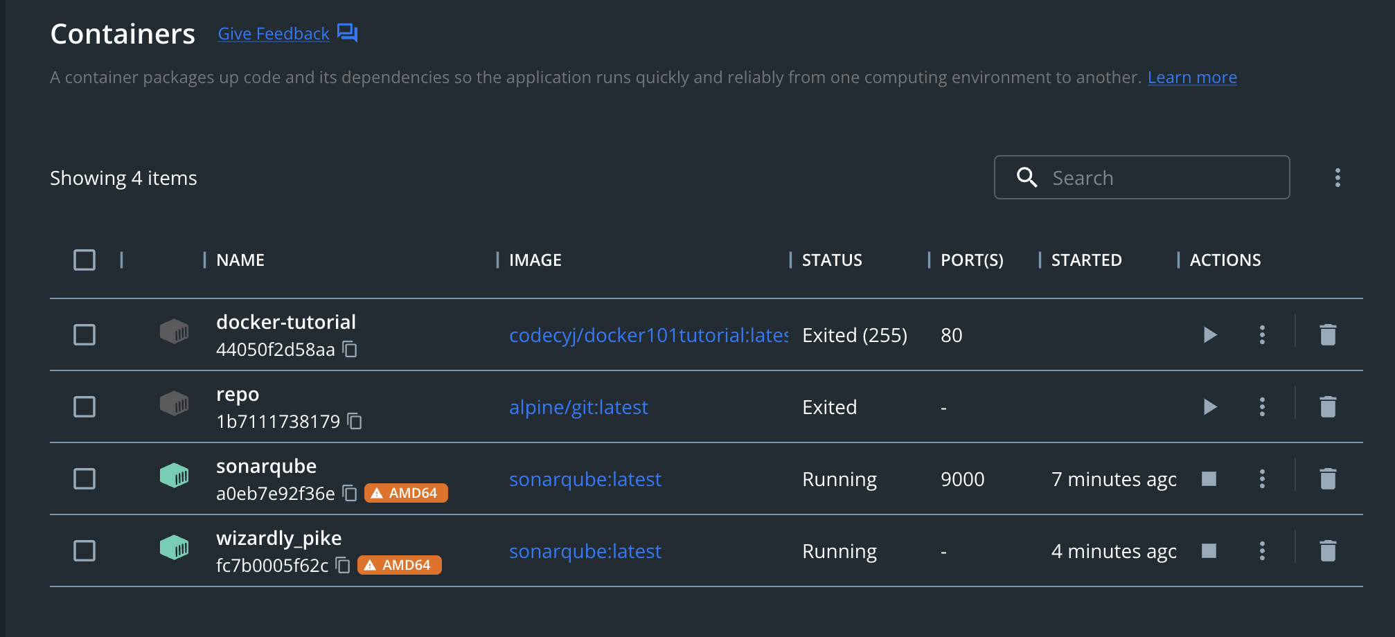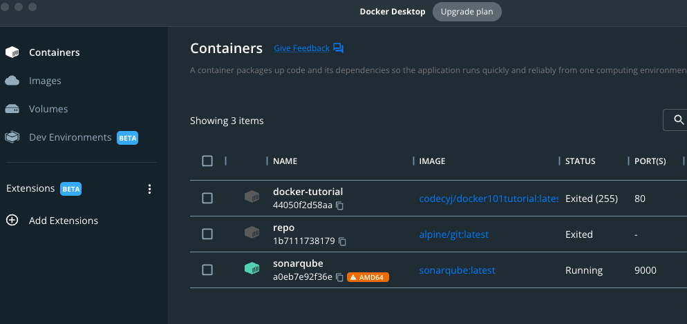 위와같이 설치에 성공하며 docker desktop에 sonarqube 이미지가 생성됩니다.