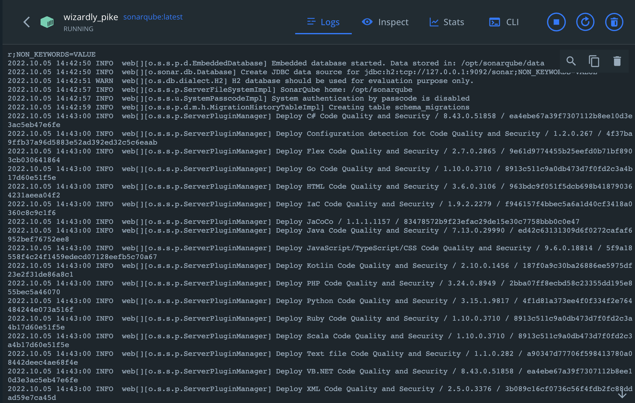 docker run -d --name sonarqube -p 9000:9000 sonarqube