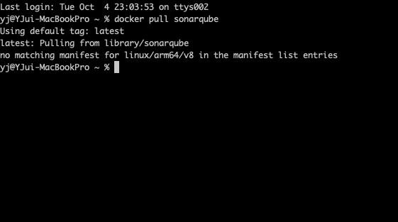 docker pull --platform linux/amd64 sonarqube라고 쳐주세요.