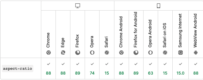 aspect-ratio는 div 뿐만 아니라 이미지, 테이블 등 모든 엘리먼트에 종횡비 적용이 가능하며,