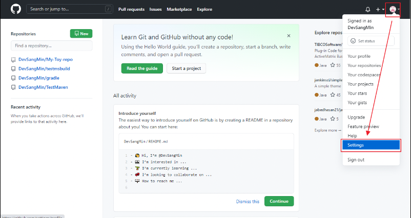 선택 시 GitHub 해당 Repository로 바로 이동가능합니다.