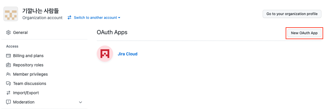 Jira Cloud와 연동할 Github OAuth 정보 생성