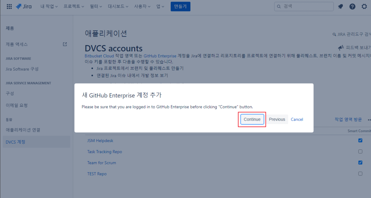 9. DVCS 계정 - GitHub 엔터프라이즈 계정으로 연결 선택