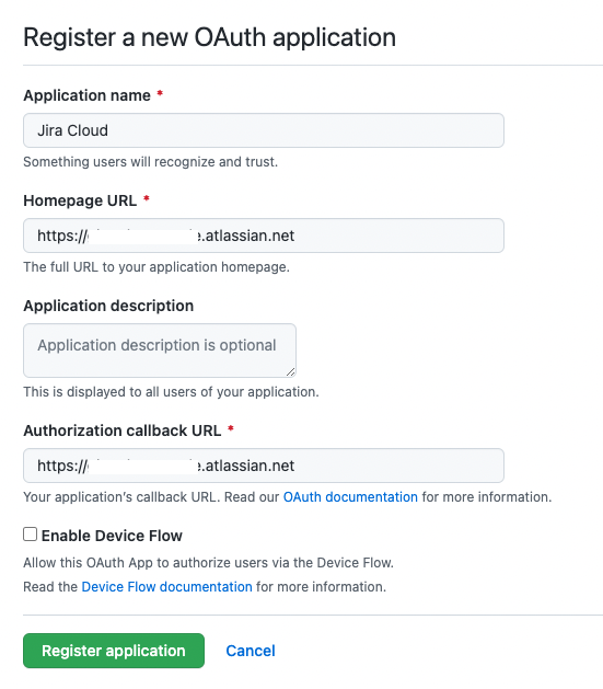 Jira Cloud와 연동할 Github OAuth 정보 생성