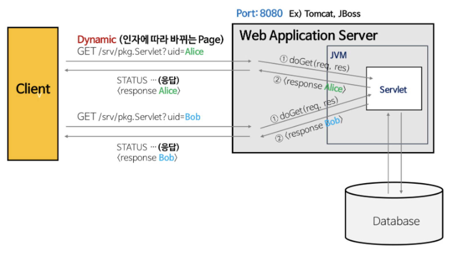 - DB조회나 다양한 로직처리를 통해 동적 컨텐츠를 제공할 수 있다.