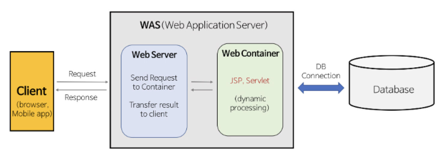 - 클라이언트로부터 HTTP 요청을 받을 수 있다. (대부분의 WAS는 Web Server를 내장하고 있다.)