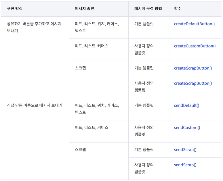 Kakao.Share.sendDefault() 함수는 카카오톡 공유하기 버튼을 추가하지 않고, 메시지 보내기 요청만 합니다.